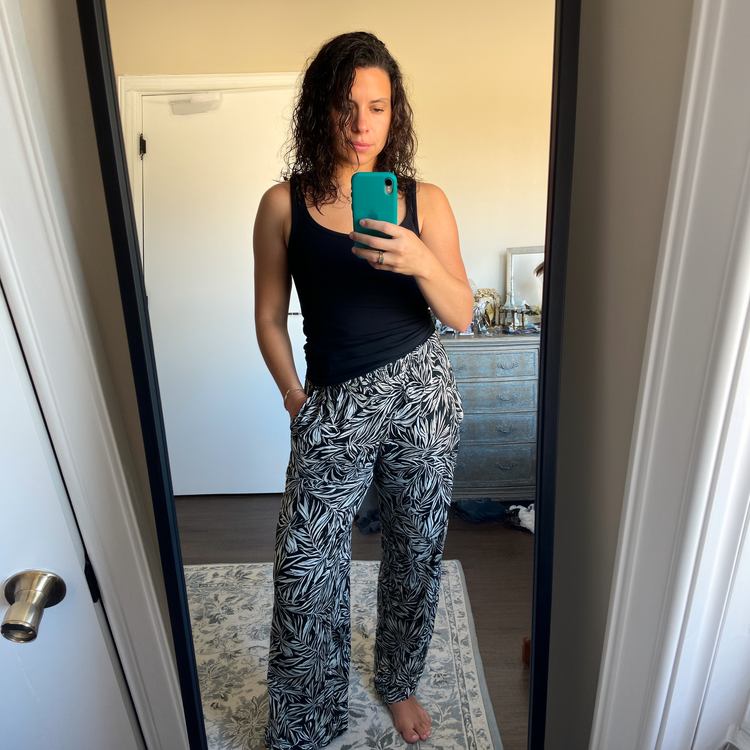 • Floral Statement Pants - The printed trousers add a bold, eye-catching contrast to the solid top for a balanced and fashionable look.