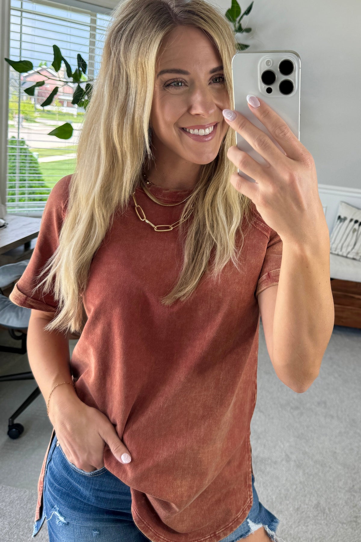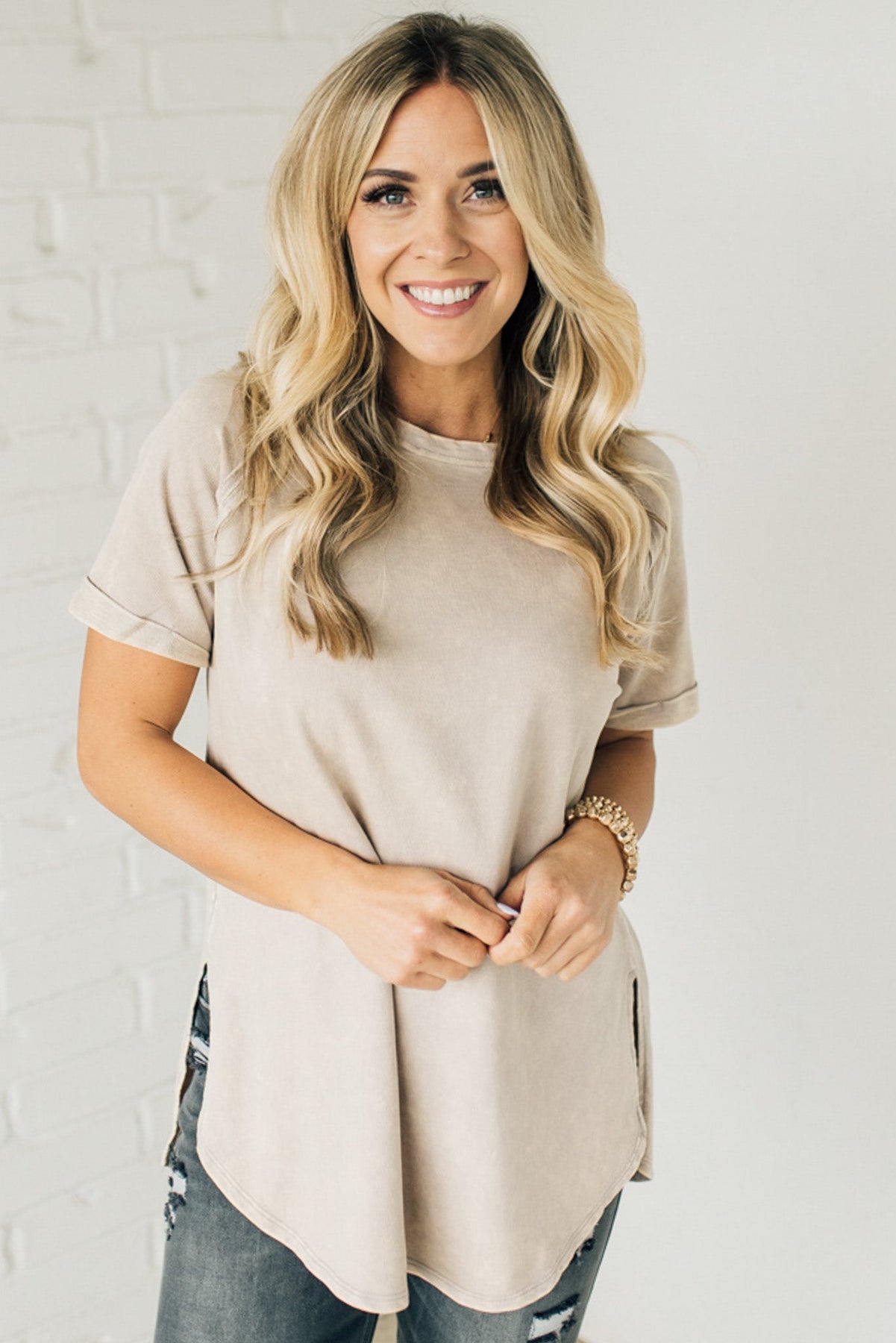 This lightweight French Terry Acid Wash Top has raw edges, raglan sleeve, rolled cuff, and a high low hemline for a modern, stylish look. Made from comfortable fabric, the split side seam adds an extra touch of detail. Make a fashion statement while staying comfortable in this top.