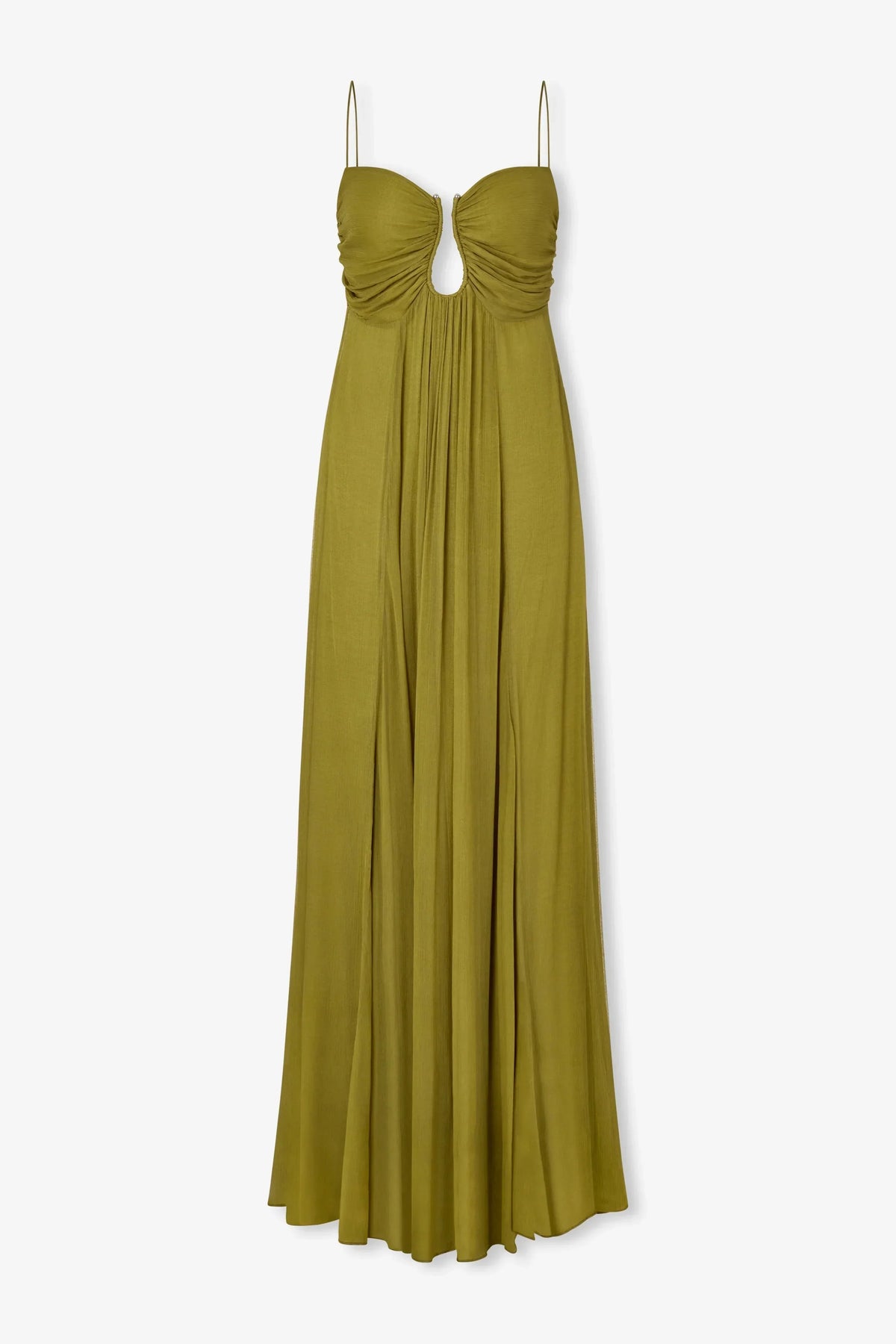 - Design: Maxi dress with high-neck silhouette
